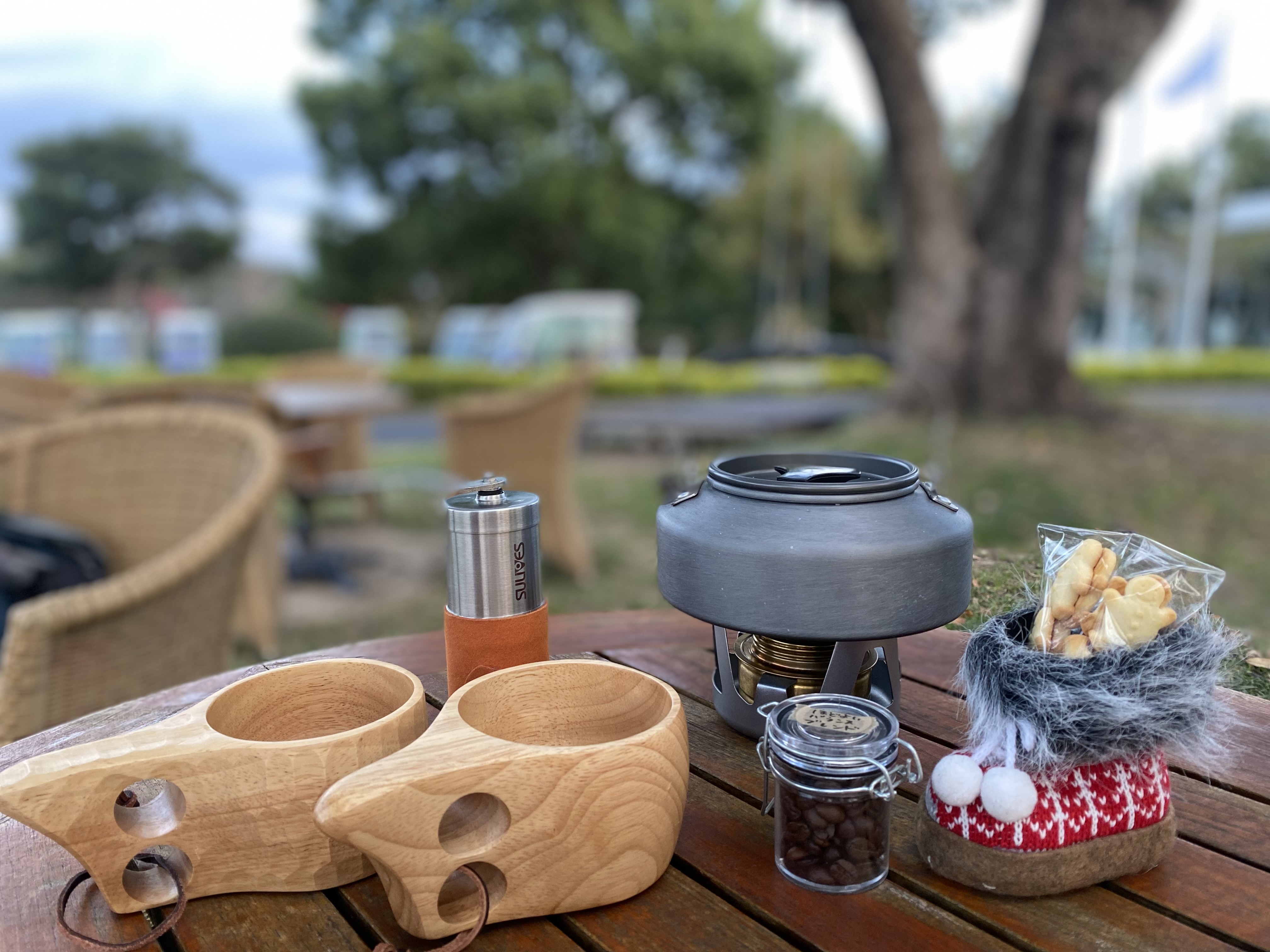 「コーヒーセット」をランドカーに積み込んで、お好きな場所で、自分たちで挽いたコーヒー豆で煎れたてコーヒーをお愉しみください。
